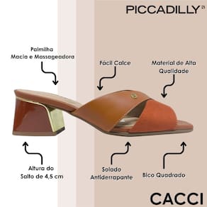 O design facilita o calce, permitindo que você coloque e retire o calçado com total facilidade, ideal para uma rotina dinâmica. As tiras cruzadas trazem firmeza ao caminhar, mantendo o pé bem acomodado, enquanto o acabamento de alta qualidade eleva a durabilidade e a sensação de bem-estar. O salto em formato moderno, com aproximadamente 4,5 cm, acrescenta personalidade ao visual, oferecendo altura na medida certa para quem deseja equilíbrio entre elegância e estabilidade.