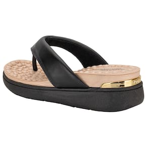 O Tamanco Feminino Flat Modare é confeccionado em Napa Pele Strech acolchoado com acabamento em costura e conta com palmilha em EVA ultra macio com esferas que ativam a circulação sanguínea e um solado em borracha com relevos antiderrapantes e salto de quatro centímetros.