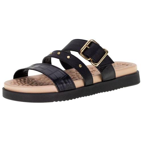 O Tamanco Feminino Flat Modare é confeccionado em Napa com detalhes em strass, acabamento em costura, fechamento por fivela de ajuste, palmilha em EVA ultramacio e solado em borracha antiderrapante.