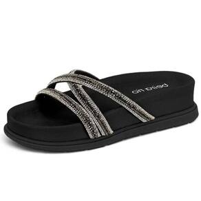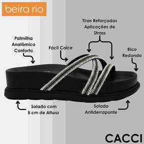 O tamanco Beira Rio combina elegância e conforto em um design estilo papete chinelo slide. Possui tiras resistentes decoradas com strass, proporcionando um toque de brilho e sofisticação ao calçado. O solado flat oferece leveza e conforto, ideal para o uso diário.