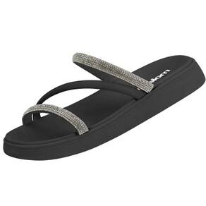 Essa sandália papete casual feminina brilho é incrível: feita com duas tirinhas de strass pedrinhas brilhantes, muito delicada, fica linda no pé. Ela calça muito bem, além de ser macia, flexível e muito leve.