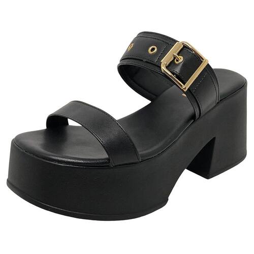 O solado plataforma antiderrapante de 5 cm proporciona estabilidade e segurança ao caminhar, ideal para quem busca altura sem abrir mão do conforto. Suas tiras largas e resistentes envolvem o pé com firmeza, garantindo um ajuste seguro e confortável, sem perder a elegância.