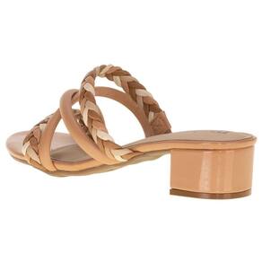 O Tamanco Feminino Salto Grosso Moleca é confeccionado em Napa de alta qualidade com acabamento em costura, detalhe trançado no cabedal, palmilha em PU e solado em borracha com salto de quatro centímetros e meio.
