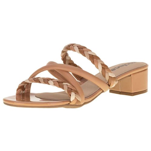 O Tamanco Feminino Salto Grosso Moleca é confeccionado em Napa de alta qualidade com acabamento em costura, detalhe trançado no cabedal, palmilha em PU e solado em borracha com salto de quatro centímetros e meio.