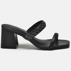 Design Moderno e Elegante: Com um salto médio grosso e bico quadrado, este tamanco oferece não apenas estilo, mas também estabilidade e segurança. As tiras com strass adicionam um brilho especial, elevando o charme do look e destacando sua personalidade.