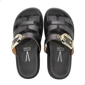 Flat Feminina Vizzano, confeccionada em material sintético com detalhe em fivela metalizada e fácil calce, essa sandália é moderna, versátil e despojada. Ideal para ocasiões casuais ou dia a dia.