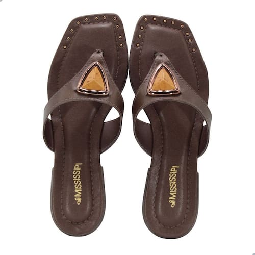 O Tamanco Mississipi Marrom é a união perfeita entre minimalismo, conforto e estilo, ideal para a mulher moderna que busca sofisticação no dia a dia. Com seu design clean e bico quadrado, este chinelo se destaca pela elegância descomplicada, destacando a parte frontal adornada com um detalhe de pedraria que adiciona um toque de brilho sutil. Os cravos metalizados na parte frontal da sola complementam a estética, garantindo um visual único e contemporâneo que reflete a sua.
