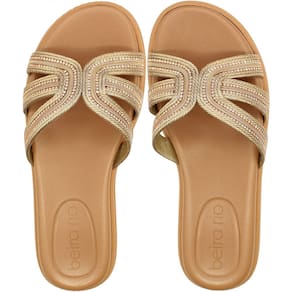 Tamanco Slide Beira Rio Tiras Transversais Strass Feminino