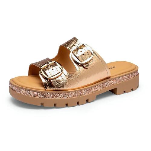 O Slide Dakota Tratorado Metalizado é a combinação perfeita entre estilo e conforto, feito para elevar o seu visual em qualquer ocasião. Com uma sola tratorada que adiciona um toque de ousadia, este slide oferece um design único, complementado por Feixes práticos e uma textura na parte superior. Além disso, destaca ainda o detalhe de brilhos sutis na lateral da sola com Glitter e glamour, conferindo um brilho discreto que adiciona charme aos looks.