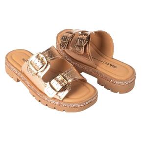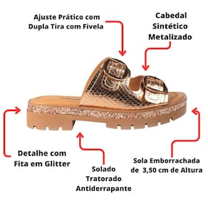 O Slide Dakota Tratorado Metalizado é a combinação perfeita entre estilo e conforto, feito para elevar o seu visual em qualquer ocasião. Com uma sola tratorada que adiciona um toque de ousadia, este slide oferece um design único, complementado por Feixes práticos e uma textura na parte superior. Além disso, destaca ainda o detalhe de brilhos sutis na lateral da sola com Glitter e glamour, conferindo um brilho discreto que adiciona charme aos looks.