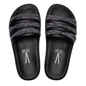 Tamanco Vizzano Feminino Tiras Entrelaçada Strass Preto 346588