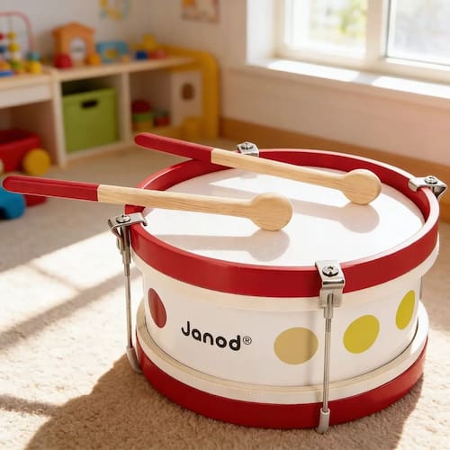 tambor infantil, instrumento musical infantil, brinquedo musical madeira, janod brinquedo, tamborzinho infantil, musicalização infantil, brinquedo educativo musical, instrumento criança, presente infantil