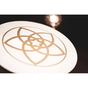 Diâmetro: 16 40,64 cm Materiais: Carvalho Siam / Pele de cabra selecionada à mão Característica 1: Pegada confortável Característica 2: Tons quentes, ricos e ressonantes Cor: Marrom Nogal Modelos Disponíveis: Venus Flower; Tree of Life Marca: Não Informado