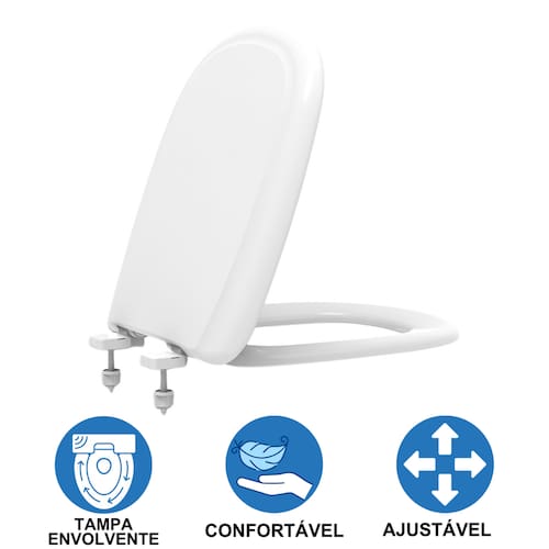 A Tampa Assento Vaso Sanitário Icasa Sabatini PP Tupan é compatível com louça Icasa Sabatini e alguns outros modelos. Desenvolvida em polipropileno (PP), um material resistente e de fácil limpeza, combina design moderno e tecnologia para proporcionar mais conforto e durabilidade. O fixador é ajustável e o anel anatômico garantindo ergonomia ao sentar, proporcionando um encaixe perfeito e acabamento moderno. Possui uma tampa envolvente que proporciona cobertura total do assento.