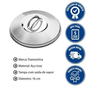 - Você vai encontrar sofisticação e utilidade com a Tampa Avulsa Tramontina Solar em Aço Inox 16 cm de Diâmetro.