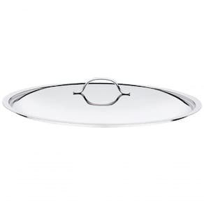 Tampa Avulsa Tramontina Professional Em Aço Inox 45cm A Tramontina usa a mais alta tecnologia para produzir panelas de aço inox com fundo triplo. São duas camadas de aço inox envolvendo uma camada de alumínio. Dessa forma, o calor da chama se distribui por igual, deixando os alimentos muito mais macios e saborosos. Além disso a comida cozinha muito mais rápido, o que acaba gerando economia. Recomendações de Uso: Antes do uso: Antes de utilizar o , remova as eventuais etiquetas e lave-o com água quente e de uso: Alguns alimentos que possuem amido, por exemplo massa e arroz, durante o cozimento, poderão deixar manchas na parte interna da panela. Essas manchas são facilmente removidas, passando um pano com suco de limão, vinagre ou a Pasta de Polir Inox Tramontina. Evite deixar alimento na panela por muito tempo, pois o sal também pode provocar manchas. Para que o produto de aço inox Tramontina fique sempre bonito e com brilho, recomendamos que seja lavado somente com detergente e esponja. Depois da lavagem, sempre que possível, enxágue o produto com água quente-o e seque imediatamente, para que se mantenha com o brilho . O cloro e as substâncias contidas na água podem deixar manchas.- Foto meramente ilustrativa- Embalagem litografada Informações Adicionais: