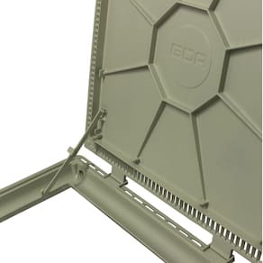 O tampão com grelha foi desenvolvido especialmente para casas de máquinas, seu diferencial é a grelha que permite a circulação de ar dentro da casa de máquina, diminuindo a umidade e aumentando a vida útil dos equipamentos (bombas, motores, filtros de piscina e outros). Possui em seu aro um sistema próprio de captação de água, que permite seu escoamento para a rede pluvial, não deixando que a água entre em contato com os equipamentos. O tampão articulado possui um sistema de trava que mantém a tampa aberta, facilitando a manutenção na casa de máquinas. Ideal para casa de máquinas de grande porte, possui uma área livre que permite um melhor aproveitamento do espaço na amplitude horizontal. Sua abertura é articulada e possui travas que mantém a tampa aberta, o que garante segurança e praticidade para realização de manutenções.