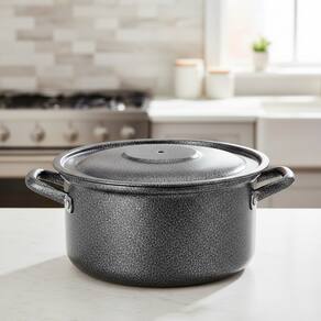 Fabricada em alumínio de alta resistência Acabamento craqueado Resistente a altas temperaturas Excelente retenção de calor Ajuda a manter a umidade e o sabor dos alimentos Reduz respingos durante o preparo Ideal para chapas de disco de arado
