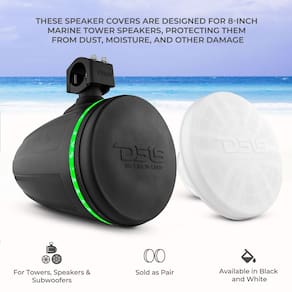 Capa de alto-falante marítimo de silicone DS18 Hydro CS-8/WH de 8" - Proteção contra água, poeira e raios UV - Compatível com alto-falantes de torre - Ótima durabilidade - Edição especial (par) -