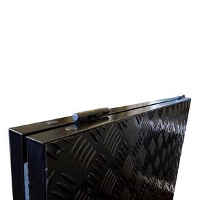 Tampa de Alumínio Para Casa de Maquina 100 x 100 - Sobrepor Cor: Preto Fabricante: Kazan Alumínio Modelo: Sobrepor sem ventilação Material: Alumínio Dimensões Externas: Largura 100 cm, Comprimento 100 cm e Altura 6 cm Dimensões Internas: Largura 90 cm, Comprimento 90 cm e Altura 6 cmA medida externa da tampa deve ser 10 cm maior do que o vão da casa de maquinas Utilização: Fechamento vãos em piso, como, casa de maquina de piscinas, cisternas, casa de passagens hidráulicas e elétricas, depósitos subterrâneos, entre outros. Características: Proporcionar perfeita estanqueidade dos vãos, alem de conforto e beleza. Toda em alumínio é leve e resistente podendo subir sobre ela. Seus pistões promovem abertura tranquila, os mesmo mantem aberta para maior comodidade. Instalação: Fixado com silicone de PU, bucha e parafuso. os mesmos não são fornecidos com a tampa . A tampa também não é furada para colocar os parafusos, pois em muitos casos ela pode ser somente coladas, ou os furos serão muito específicos variando caso a caso. Embalagem: Papelão Marca: Kazan