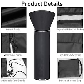 Nome do produto: Capas de aquecedor de pátio atualizadas à prova d'água com fita refletiva, zíper e bolsa de armazenamento Descrição: Capas de aquecedor de pátio atualizadas à prova d'água, capa de aquecedor externo com fita refletiva, zíper e bolsa de armazenamento, impermeável, à prova de poeira, resistente ao vento, resistente a UV, resistente à neve, preto Tamanho: 89" altura x 33,8" cúpula x 19" base Incluído na embalagem: 1 capa de aquecedor de pátio. 1 bolsa de armazenamento. Função: Impermeável, com fita refletiva, à prova de poeira, resistente ao vento, resistente a UV, resistente à neve - ?Tamanho universal?O tamanho da nossa capa de aquecedor de pátio é 200 cm A x 83 cm P x 48 cm B, serve na maioria dos aquecedores de pátio padrão. Meça o aquecedor do seu pátio antes de comprar. - ?Design de tira refletiva atualizado?Nossas capas de aquecedor de pátio adotam um design de tira refletiva para melhorar a visibilidade do aquecedor de pátio. O design da tira reflexiva pode evitar que você bata acidentalmente no aquecedor quando estiver andando e evite machucar a si mesmo ou danificar o aquecedor. Melhore a segurança à noite. - ?Tecido de qualidade?O tecido Oxford é uma escolha clássica para capas de móveis de exterior, com um revestimento interno resistente à água adicional. O tecido é à prova d'água e protetor solar, o que pode efetivamente evitar que o aquecedor de pátio enferruje e envelhecimento causado pelo ambiente externo. - ?Design para mau tempo?A capa para aquecedor externo é antivento, a capa de aquecedor de pátio grande premium para design de todas as estações protege contra danos causados pelo vento, chuva, geada, raios UV, sujeira, poeira, excrementos de pássaros, seiva de árvore e muito mais. - ?Fácil de usar e limpar?Esta capa de aquecedor de pátio à prova d'água ao ar livre chega até você, sendo armazenada em uma bolsa, fácil de armazenar. E é projetada com zíper que torna mais fácil descobrir e cobrir. O design de casaco impermeável permite que ele limpe com água e seque facilmente com vento e luz solar.