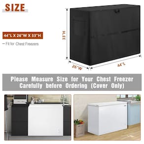 Hengme Capa para freezer de peito – Capas de freezer à prova d'água à prova de poeira, adequada para capas compactas de freezer (111 cm C x 66 cm L x 83 cm A) - Material premium: a capa do freezer é feita de poliéster 420D resistente à água com revestimento de PU, material resistente que protege a longa vida útil do seu freezer. Dimensões das capas profundas do freezer: 115 x 64 x 89 cm (L x L x A), adequado para cobertura de freezer de peito para pés. - Cinto ajustável: A capa para freezer externo tem alça ajustável na parte inferior para proteger sua geladeira portátil de arranhões e poeira. - Design exclusivo: a capa do freezer é projetada por designers profissionais, o produto adiciona um zíper duplo, ao usá-lo, você só precisa abrir o zíper, não precisa remover toda a tampa para usar o freezer, alças acolchoadas resistentes facilitam a remoção da tampa da mesa de preparação. - Fácil armazenamento: Há um bolso com zíper na frente para guardar acessórios como um abridor de garrafa de canudo e uma colher de gelo. - Serviço de alta qualidade: Se você tiver alguma dúvida no processo de pedido ou uso, comigo a tempo, e eu definitivamente lhe darei uma resposta satisfatória.