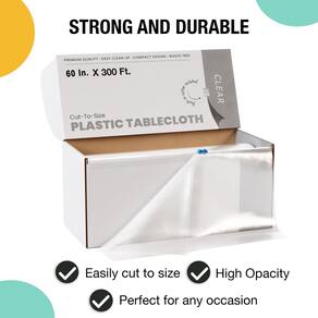 - Qualidade premium: nossos rolos retangulares de toalhas de mesa descartáveis de plástico são feitos de plástico resistente. Nossos rolos de toalha de mesa de plástico descartável transparente são à prova d'água e aguentam o uso pesado e derramamentos.