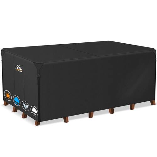 - | Capa premium para móveis de pátio | - Mede 345 x 188 x 71 cm (comprimento x largura x altura), as capas de móveis de pátio Zettum são perfeitamente compatíveis com a maioria dos conjuntos de sofá, mesa e cadeira ao ar livre. Esta capa de móveis de pátio de 345 cm é projetada para caber na maioria das mesas retangulares com combinação de cadeiras padrão de 8 a 12 ou conjuntos de sofá de 6 a 8 lugares, permite que você cubra móveis de exterior com tamanho de até 345 cm (C) x 188 cm (L) (Meça o tamanho do seu conjunto de móveis com cuidado! ).