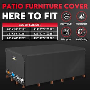 - | Capa resistente ao desbotamento por anos | - O teste UV pode reproduzir os danos causados pela luz solar, chuva e orvalho através do equipamento. O teste mostra que uma capa de móveis de pátio para assentos ao ar livre pode suportar pelo menos 3 anos de envelhecimento UV, o que é muito melhor do que outros. Graças à sua característica resistente ao desbotamento, nossas capas de móveis de gramado 600D protegerão sua mesa e cadeiras ao ar livre por anos!