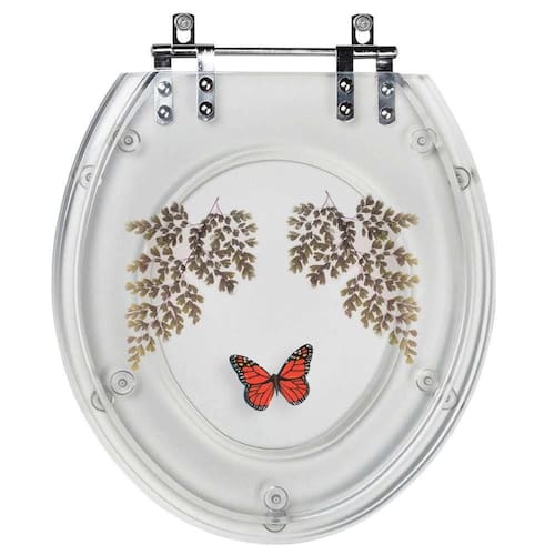 A Tampa de Privada Oval Incolor Decorada Avenca Borboleta é a opção ideal para quem busca combinar funcionalidade com elegância em seu banheiro.