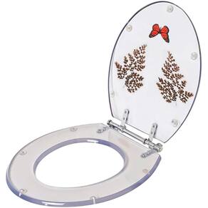 A Tampa de Privada Oval Incolor Decorada Avenca Borboleta é a opção ideal para quem busca combinar funcionalidade com elegância em seu banheiro.