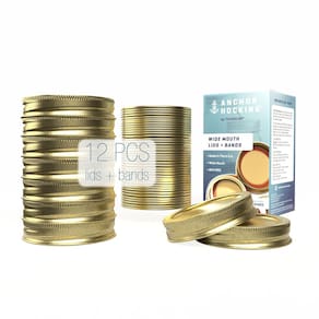 O pacote consiste em um total de 12 conjuntos de faixas e tampas. Ajuste universal com todos os frascos Wide Mouth Mason. Essas tampas para conservas são feitas de aço estanhado de alta qualidade, livre de BPA e PFAS, tornando-as duráveis, seguras para refrigeração e capazes de criar uma vedação hermética e inviolável para preservação de alimentos