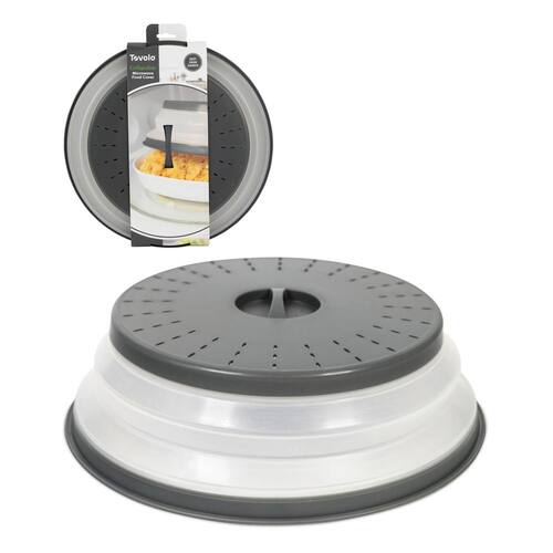 Tovolo Capa para respingos de micro-ondas para alimentos, grande (carvão) - Tampa protetora de respingos de silicone dobrável e ventilada - Placa de micro-ondas e tampa de prato com alça - Utensílio