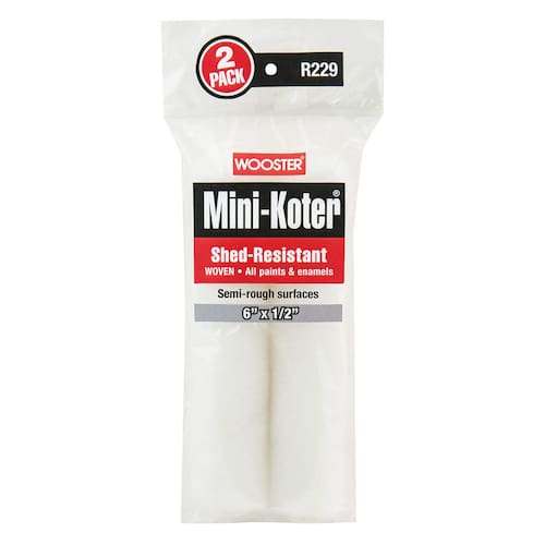 Capa de rolo de pintura tecida Wooster R229-6 Mini-Koter resistente a galpão de 1/2 polegada Nap 6", pacote com 2 unidades - pacote com 2 conjuntos de capa de rolo Wooster Genuine de 6", resistente a galpões, 1/2", pacote com 2 conjuntos de capa de rolo nº