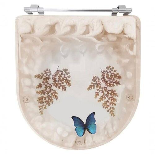 Tampa De Vaso Acrílico Calypso Bege Decorada Com Borboleta Azul Para Incepa Tampa De Vaso Acrílico Calypso Bege Decorada com Borboleta Azul para Incepa é a escolha perfeita para seu banheiro. O Assento Sanitário Poliéster é considerado o melhor tipo de assentos sanitários do mercado pelo seu acabamento impecável e excelente durabilidade. Este assento de vaso sanitário Calypso cor Bege é produzido em resina maciça de poliéster. O poliéster é uma resina semelhante ao acrílico, só que mais robusta / resistente. Por isso, é totalmente impermeável, pode ser lavado com água à vontade. Fácil de limpar. Não acumula sujeira.