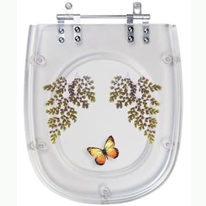 Tampa de Vaso Sanitário Poliester Sabatini Decorada Borboleta é a escolha perfeita para seu banheiro trazendo beleza e praticidade. É compatível com vasos sanitários da linha Sabatini da Icasa, com ou sem caixa acoplada. Não é compatível com outros modelos de vaso sanitário. Este produto é transparente com decoração, fica lindo no banheiro. O assento (parte onde senta) é marmorizado branco e a tampa é transparente com decoração de borboleta. Totalmente impermeável, com acabamento brilhante e ferragem metálica que não enferruja. Instalação rápida e fácil, acompanham os parafusos de fixação e basta apenas uma chave de fenda para montar. Entrega garantida e rastreada com embalagem dupla reforçada. Cor: Transparente Distância entre centros dos furos da louça: 15cm Acabamento: brilhante Dicas: Itens inclusos: assento e tampa em resina de poliéster, ferragem completa para instalação e embalagem dupla reforçada. Limpeza: recomenda-se a limpeza com água e sabão neutro e não utilizar produtos abrasivos ou químicos. Instalação: Sem desmontar o produto, posicione sobre o vaso sanitário e encaixe os dois parafusos com as borrachas pretas dentro dos furos do vaso. Aperte com a chave de fenda no sentido horário até ficar firme. Importante: este anúncio inclui somente o produto conforme descrição acima. Todos os elementos decorativos das fotos não estão inclusos. Observação: O código 6LPF gravado na louça sanitária corresponde ao fluxo de água de uma descarga e não indica o modelo da mesma. Os produtos de poliéster com decoração podem apresentar uma eventual variação em relação as fotos apresentadas, pois tem em seu processo de fabricação uma parte puramente artesanal, o que lhes confere identidade única e absoluta originalidade. Os desenhos da decoração ficam dentro da resina de poliéster, ou seja não deslocam e/ou desbotam com a limpeza. A base da peça é sempre Cristal Transparente e após inserido decorações e cores quando houver.