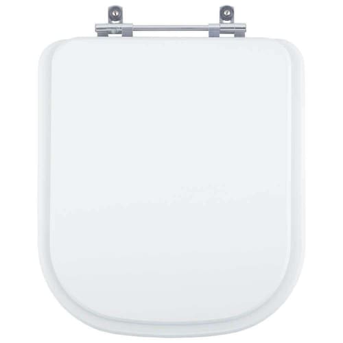 O encaixe do assento sanitário no vaso é feito por uma ferragem metálica que não oxida e não enferruja.