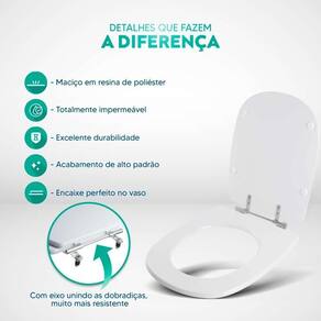 Limpeza: recomenda-se a limpeza do assento sanitário poliéster com água e sabão neutro, não utilizar produtos abrasivos.
