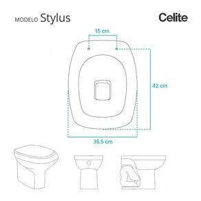 Compatível com o vaso sanitário Celite modelo Stylus com ou sem caixa acoplada.