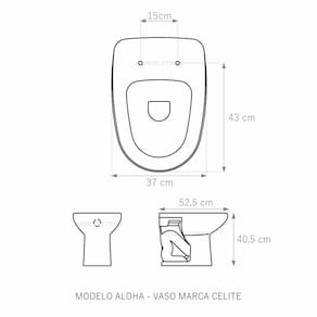 Assento Sanitário (tampa de vaso) fabricado em madeira MDF com pintura laqueada, com proteção raios UV, que garante excelente acabamento e durabilidade. Compatível com vasos (bacias/louças) sanitários com ou sem caixa acoplada. Tem calços de PVC instalados na tampa e no assento para proporcionar estabilidade ao uso, pois distribui o peso uniformemente sobre a louça sanitária. Montagem simples e fácil. Possui ferragem em alumínio anodizado que não enferruja/oxida e oferece muita resistência. O assento é acompanhado por parafusos para instalação. Embalagem dupla reforçada garante o recebimento do produto totalmente protegido. Especificações: - Dimensões da caixa: largura: 49,50cm. Altura: 4,00cm comprimento: 39,50cm - Peso do produto: 1,98kg - Acabamento: brilhante - Uso: este assento é adequado para uso na louça Celite modelo Aloha - Garantia: 3 meses - Itens inclusos: Tampa e assento em MDF com calços de PVC, ferragem inoxidável, embalagem duplamente reforçada. Contém todos os parafusos e encaixes para instalação, sendo necessária somente uma chave de fenda para instalar o produto na louça sanitária. Instalação: posicione o produto, devidamente centralizado, em cima do vaso sanitário. Sem desmontar a ferragem, insira as buchas de borracha dentro dos furos da bacia sanitária. Encaixe os parafusos e posicione as porcas. Utilizando uma chave de fenda, aperte o parafuso no sentido horário até que o assento esteja firme e fixo no vaso. Manutenção: recomendamos a limpeza periódica com pano levemente umedecido com sabão neutro. Não usar esponjas abrasivas ou palha de aço nem qualquer tipo de produto químico.