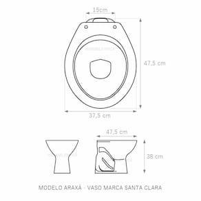 Assento Sanitário (tampa de vaso) fabricado em madeira MDF com pintura laqueada, com proteção raios UV, que garante excelente acabamento e durabilidade. Compatível com vasos (bacias/louças) sanitários com ou sem caixa acoplada. Tem calços de PVC instalados na tampa e no assento para proporcionar estabilidade ao uso, pois distribui o peso uniformemente sobre a louça sanitária. Montagem simples e fácil. Possui ferragem em alumínio anodizado que não enferruja/oxida e oferece muita resistência. O assento é acompanhado por parafusos para instalação. Embalagem dupla reforçada garante o recebimento do produto totalmente protegido. Especificações: - Dimensões da caixa: largura: 51,50cm. Altura: 4,00cm comprimento: 38,00cm - Peso do produto: 1,98kg - Acabamento: brilhante - Uso: este assento é adequado para uso na louça Santa Clara de modelo Araxa - Garantia: 3 meses - Itens inclusos: Tampa e assento com calços de PVC, ferragem inoxidável, embalagem duplamente reforçada. Contém todos os parafusos e encaixes para instalação, sendo necessária somente uma chave de fenda para instalar o produto na louça sanitária. Instalação: posicione o produto, devidamente centralizado, em cima do vaso sanitário. Sem desmontar a ferragem, insira as buchas de borracha dentro dos furos da bacia sanitária. Utilizando uma chave de fenda, aperte o parafuso no sentido horário até que o assento esteja firme no vaso. Manutenção: recomendamos a limpeza periódica com pano levemente umedecido com sabão neutro. Não usar esponjas abrasivas ou palha de aço nem qualquer tipo de produto químico.