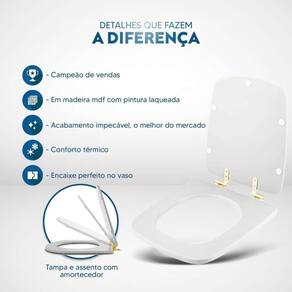 Durabilidade e Resistência: Fabricado em MDF com camadas de pintura laqueada, este assento oferece não apenas beleza, mas também conforto térmico e alta resistência. Seu acabamento impecável adiciona um toque de classe ao seu banheiro.