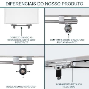 Material: maciço em resina de poliester. Ferragens metálicas em alumínio anodizado (mesmo material usado em box de banheiro, não oxida e não enferruja)