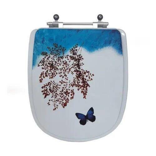 Assento Sanitário com tampa de decoração de Borboleta Azul exclusiva e inédita. Perfeita para combinar com o banheiro. Com acabamento perfeito e decoração exclusiva, esta tampa irá trazer ainda mais elogios para seu banheiro. Ferragem em Alumínio Anodizado (não enferruja/oxida) Camada extra de verniz alto brilho. Decoração não desbota e não sai com a limpeza diária. Fica firme no vaso sanitário. Este produto é adequado para uso nas bacias sanitárias modelo Sabatini da Icasa. Informações Técnicas: Principais Componentes: Tampa e Assento em MDF maciço, calços de PVC para assentamento na louça, ferragem em metal inoxidável com sistema de fixação regulável, embalagem dupla reforçada. Modelo : Sabatini Cor : Branco Importante: todos os elementos decorativos das fotos não estão inclusos. Caso queira outra opção de decoração (ex: flor, golfinho, fundo do mar...) por favor consulte em Perguntas e Respostas, para lhe enviarmos o link do anuncio na decoração escolhida.