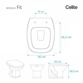 Limpeza: recomenda-se a limpeza do assento sanitário poliéster com água e sabão neutro, não utilizar produtos abrasivos.