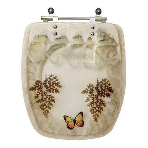 Tampa de Vaso Sanitário Poliester Primula Plus Bege Claro Decorada com Borboleta para vaso Fiori é a escolha perfeita para seu banheiro trazendo beleza e praticidade. É compatível com vasos sanitários da linha Primula, Primula Plus e Amarilis da Fiori, com ou sem caixa acoplada. Este produto é transparente com decoração, fica lindo no banheiro. O assento (parte onde senta) é marmorizado bege claro e a tampa é transparente com decoração de borboleta. Totalmente impermeável, com acabamento brilhante e ferragem metálica que não enferruja. Instalação rápida e fácil, acompanham os parafusos de fixação e basta apenas uma chave de fenda para montar. Entrega garantida e rastreada com embalagem dupla reforçada. Cor: Marmorizado bege claro com Decoração na tampa Distância entre centros dos furos da louça: 15cm Acabamento: brilhante Dicas: Itens inclusos: assento e tampa em resina de poliéster, ferragem completa para instalação e embalagem dupla reforçada. Limpeza: recomenda-se a limpeza com água e sabão neutro e não utilizar produtos abrasivos ou químicos. Instalação: Sem desmontar o produto, posicione sobre o vaso sanitário e encaixe os dois parafusos com as borrachas pretas dentro dos furos do vaso. Aperte com a chave de fenda no sentido horário até ficar firme. Importante: este anúncio inclui somente o produto conforme descrição acima. Todos os elementos decorativos das fotos não estão inclusos. Observação: O código 6LPF gravado na louça sanitária corresponde ao fluxo de água de uma descarga e não indica o modelo da mesma. Os produtos de poliéster com decoração podem apresentar uma eventual variação em relação as fotos apresentadas, pois tem em seu processo de fabricação uma parte puramente artesanal, o que lhes confere identidade única e absoluta originalidade. Os desenhos da decoração ficam dentro da resina de poliéster, ou seja não deslocam e/ou desbotam com a limpeza. Ean: 7899983675649