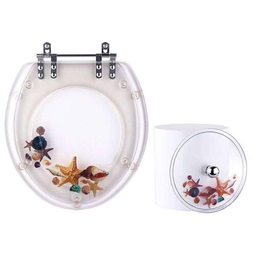 Tampa de Vaso e Lixeira Decorada Conchas Fundo do Mar - Branco