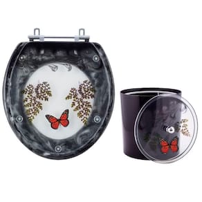 Tampa de Vaso e Lixeira Decorada Preto com Borboleta Vermelha