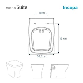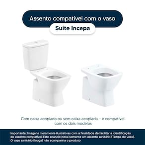Este assento sanitário é compatível para uso em vaso sanitário Incepa modelo Suite com ou sem caixa acoplada.