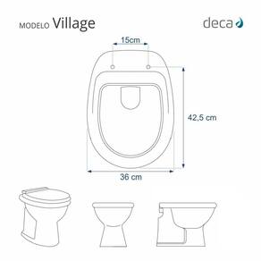 Detalhes e Cuidados Especiais: * Cor: Branco * Compatibilidade: Modelo Village da marca Deca * Conteúdo da Embalagem: Assento sanitário, parafusos de fixação e instruções de instalação. * Fabricante do Assento Sanitário: Pontto Lavabo.